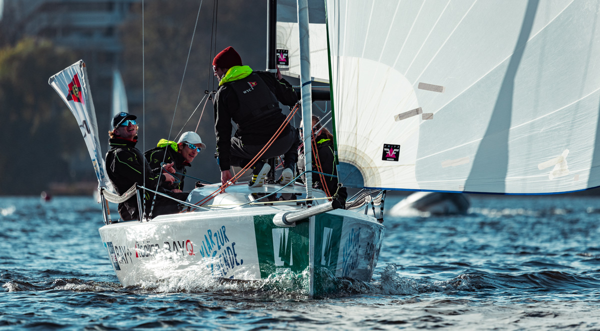 Mit einer überzeugenden Serie von acht ersten, zwei zweiten und einem vierten Platz in elf Flights positionierten sich Steuermann Leon Passlack, Taktiker Tobias Schadewaldt, Florian Thoelen und Florian Weser von Beginn an ganz oben in der Tabelle, der Sieg der erfolgsverwöhnten Seglerinnen und Segler von der Außenalster war zu keinem Zeitpunkt gefährdet. „Es war ein krasser Kraftakt, das Triple zu gewinnen, wir haben lange dafür gekämpft“, sagte Ex-Olympionike Tobias Schadewaldt, der als Taktiker dabei war, nach den Rennen.