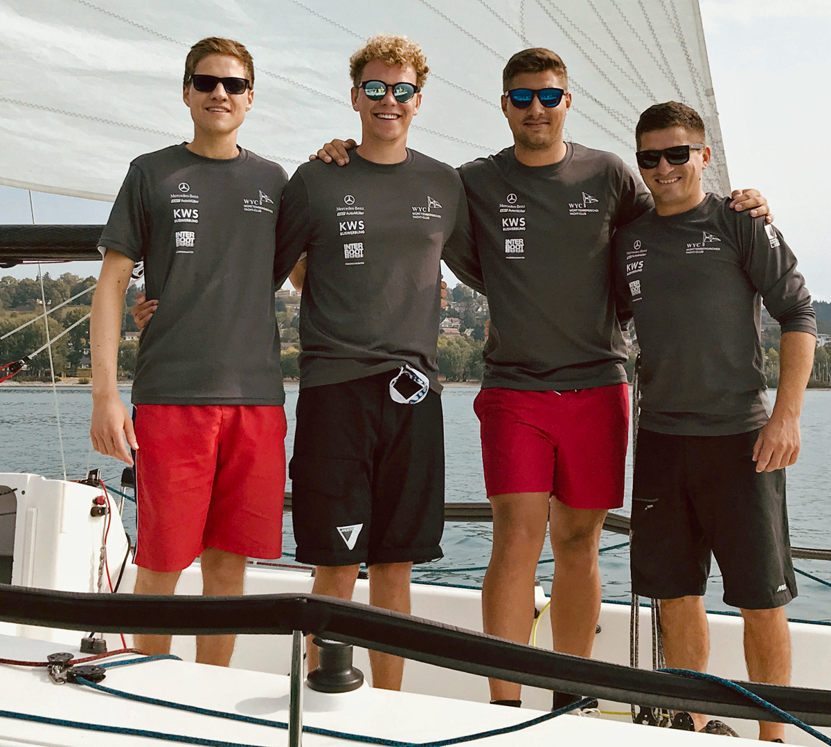 Dennis und Kevin Mehlig, Yannick Hafner und Marvin Frisch (von rechts) gehen für den Württembergischen Yacht-Club beim 4. Event der Segel-Bundesliga vom 24. bis 26. August auf dem Wannsee in Berlin ins Rennen. Bild: © WYC