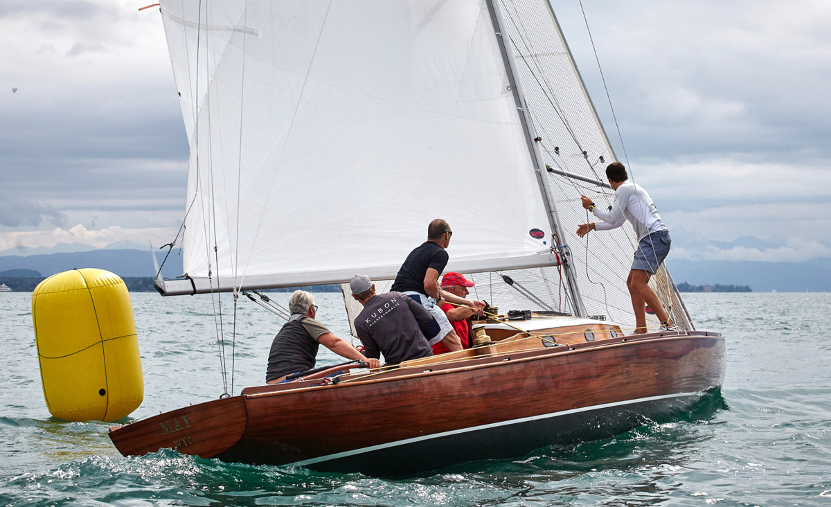 Bestes älteres Boot beim Europapokal der 45 qm Nationalen Kreuzer beim WYC in Friedrichshafen: Die „May“ mit Klaus Diesch (WYC) am Ruder. © Ben Decker WYC