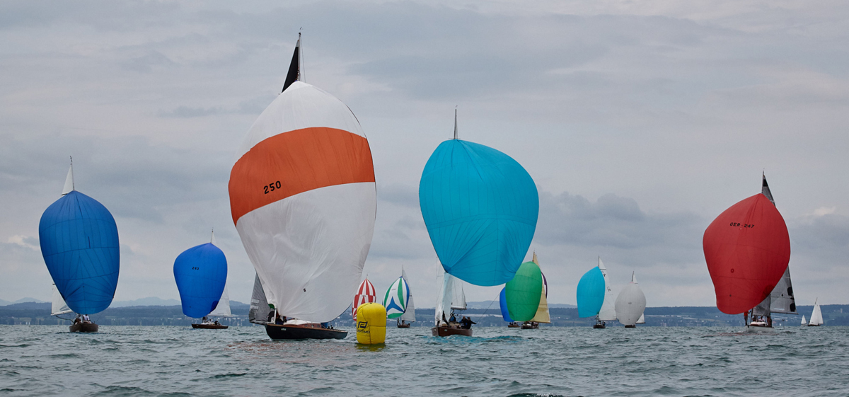 Die 45 qm Nationalen Kreuzer unter Spinnaker beim Europapokal des WYC in Friedrichshafen. © Ben Decker WYC