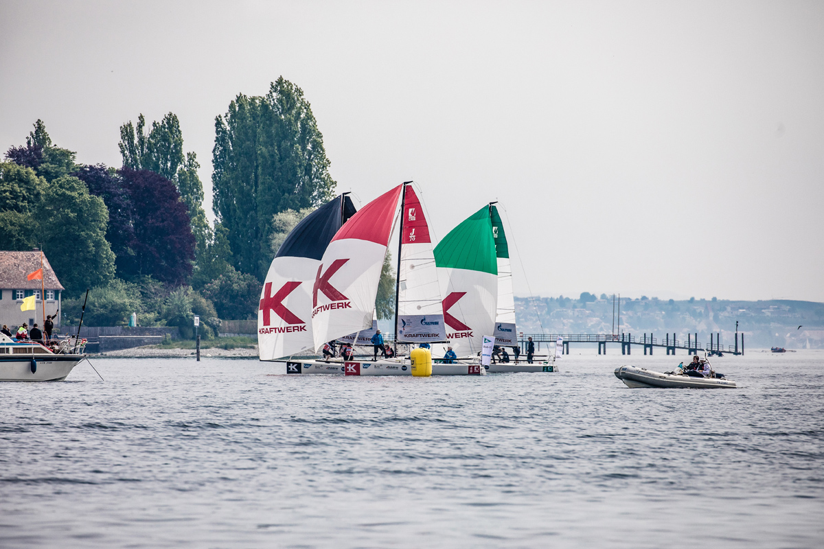 Nach einem durchschnittlichen Start in die Saison vor zwei Wochen, findet der amtierende Deutsche Meister vom NRV aus Hamburg am Bodensee zu alter Stärke zurück und gewinnt den zweiten Spieltag. „Wir wussten, was uns dieses Wochenende bezüglich des Wetters erwartet. Wir sind froh, dass wir überhaupt segeln konnten. Dass es für uns so ausgeht, ist einfach perfekt", erklärt Tobias Schadewaldt, der gemeinsam mit Johann Kohlhoff, Hinnerk Müller und Florian Thoelen an den Start ging.